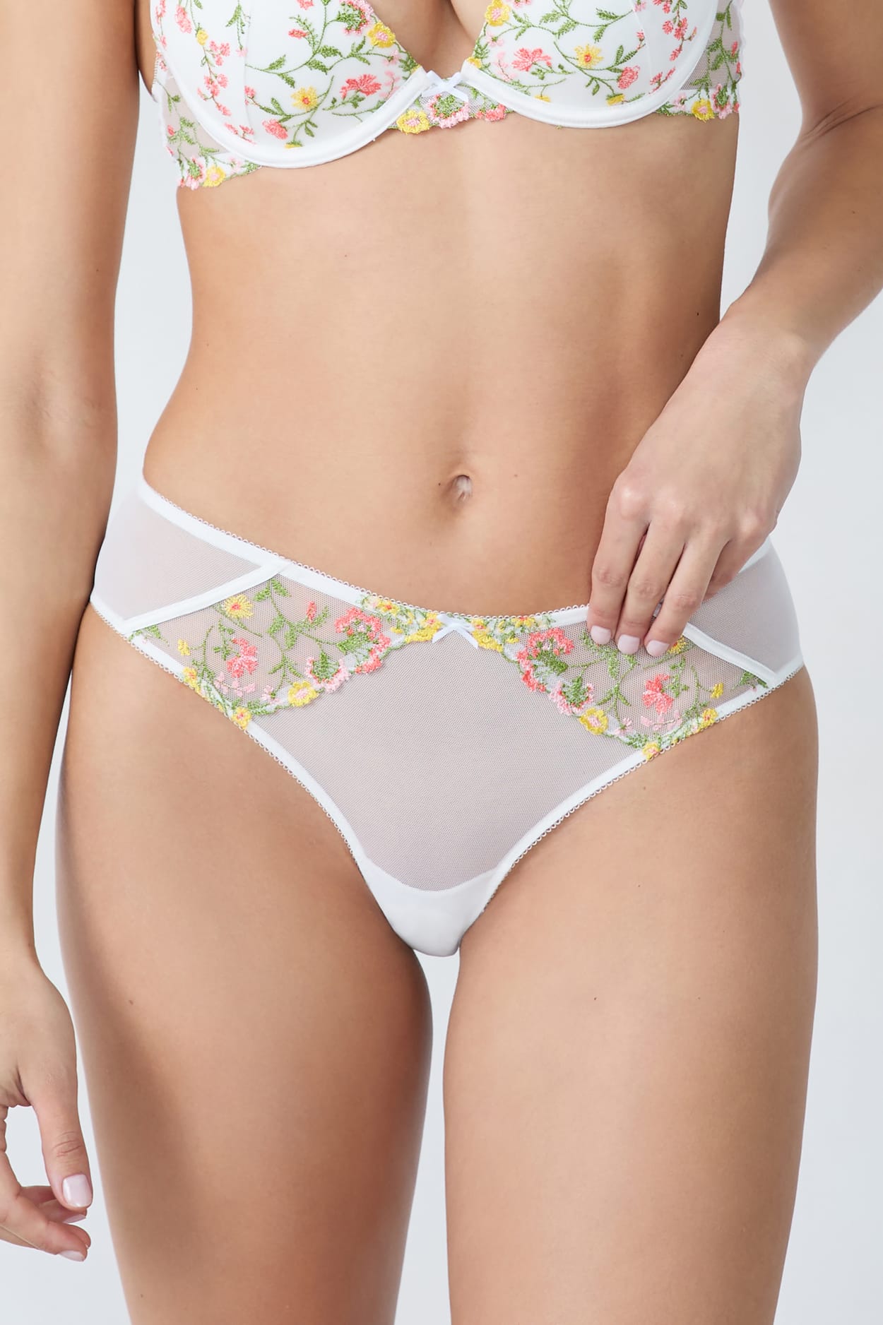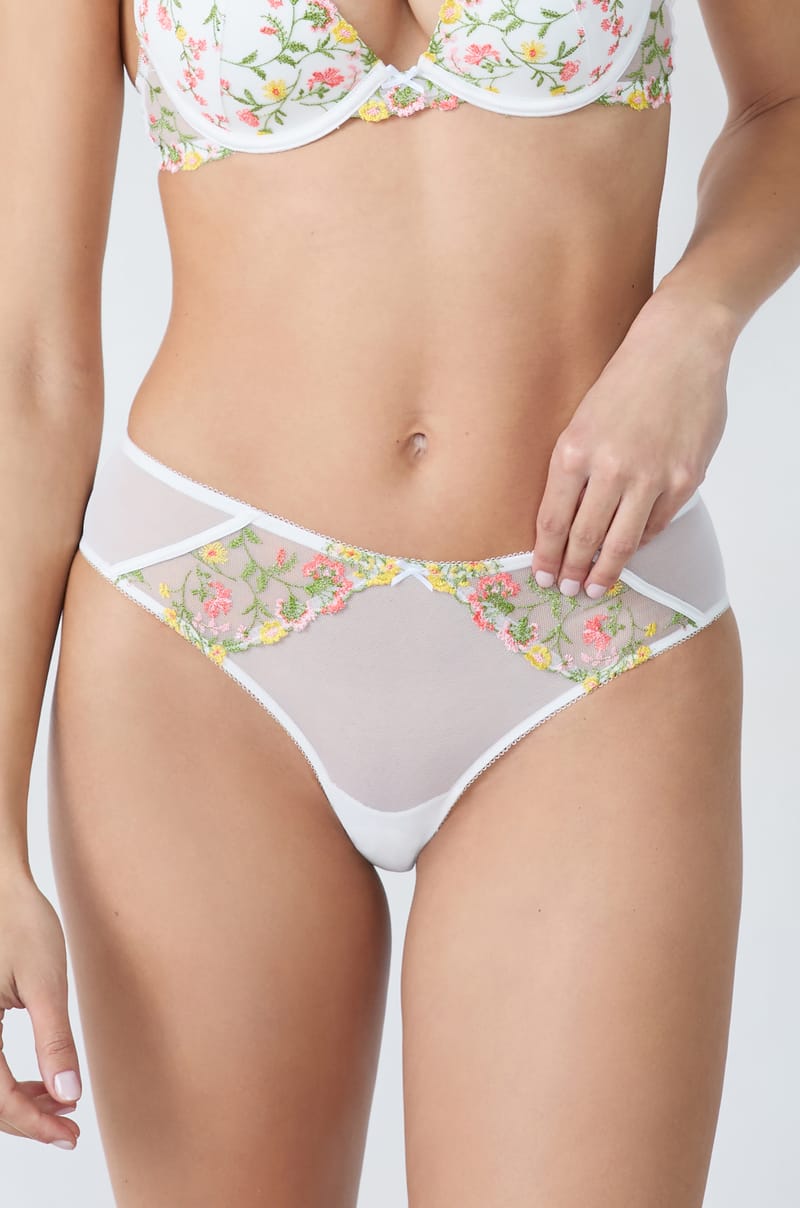 Sztuka haftu nadaje tym hipsterom grę kwiatów i przezroczystości. Ich zwiewny tiul i kwiatowy haft dodają subtelnego akcentu zmysłowości i z wdziękiem podkreślają kształty.