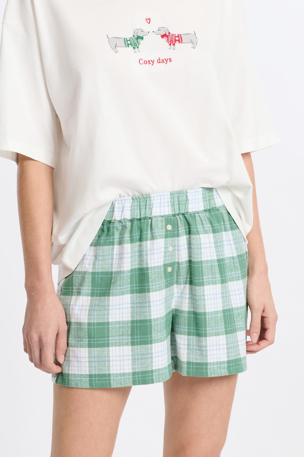 Krótkie spodenki piżamowe w kratę z bawełny;${refinementColor}