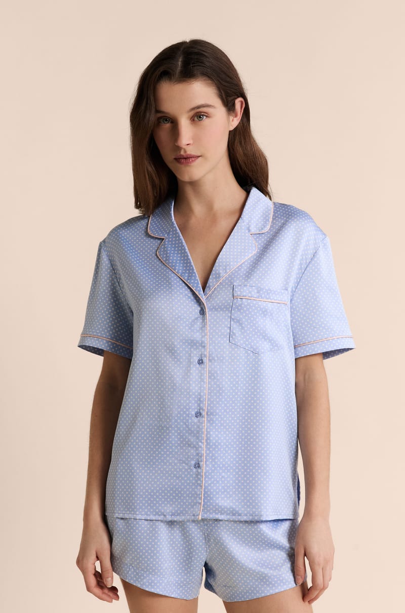Satynowa koszula piżamowa w groszki