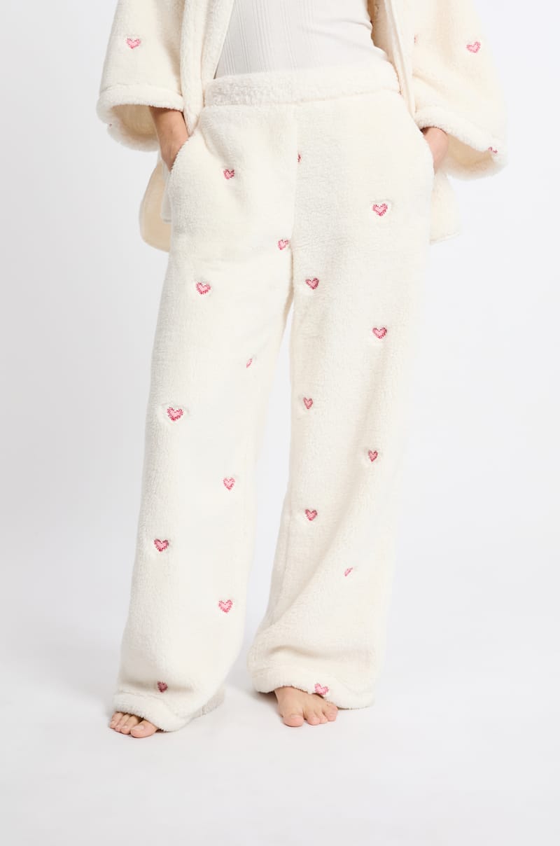 Spodnie piżamowe w serduszka z efektem polaru;${refinementColor}