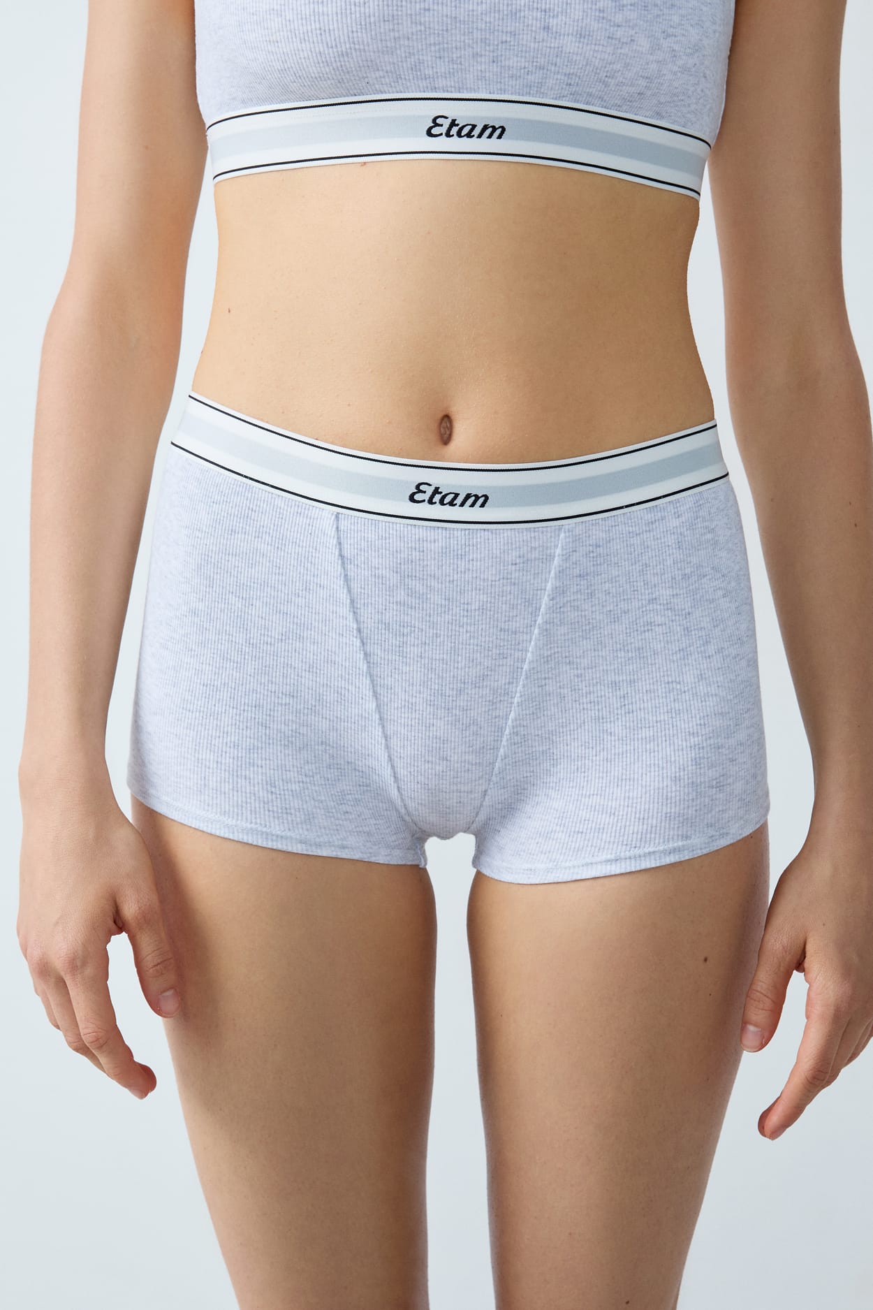 Dzięki miękkiemu materiałowi z prążkowanej bawełny, te elastyczne szorty boyleg są idealnym sprzymierzeńcem komfortu. Elastyczna opaska zapewnia idealne podtrzymanie przez cały dzień.