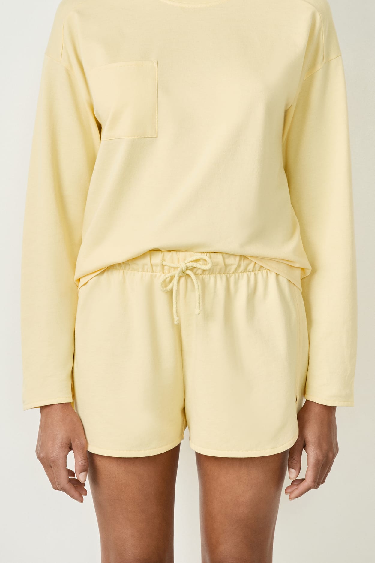 Te szorty piżamowe o rozszerzanym kroju są idealne na przytulne wieczory. Wygląd staje się delikatny dzięki bocznym rozc...